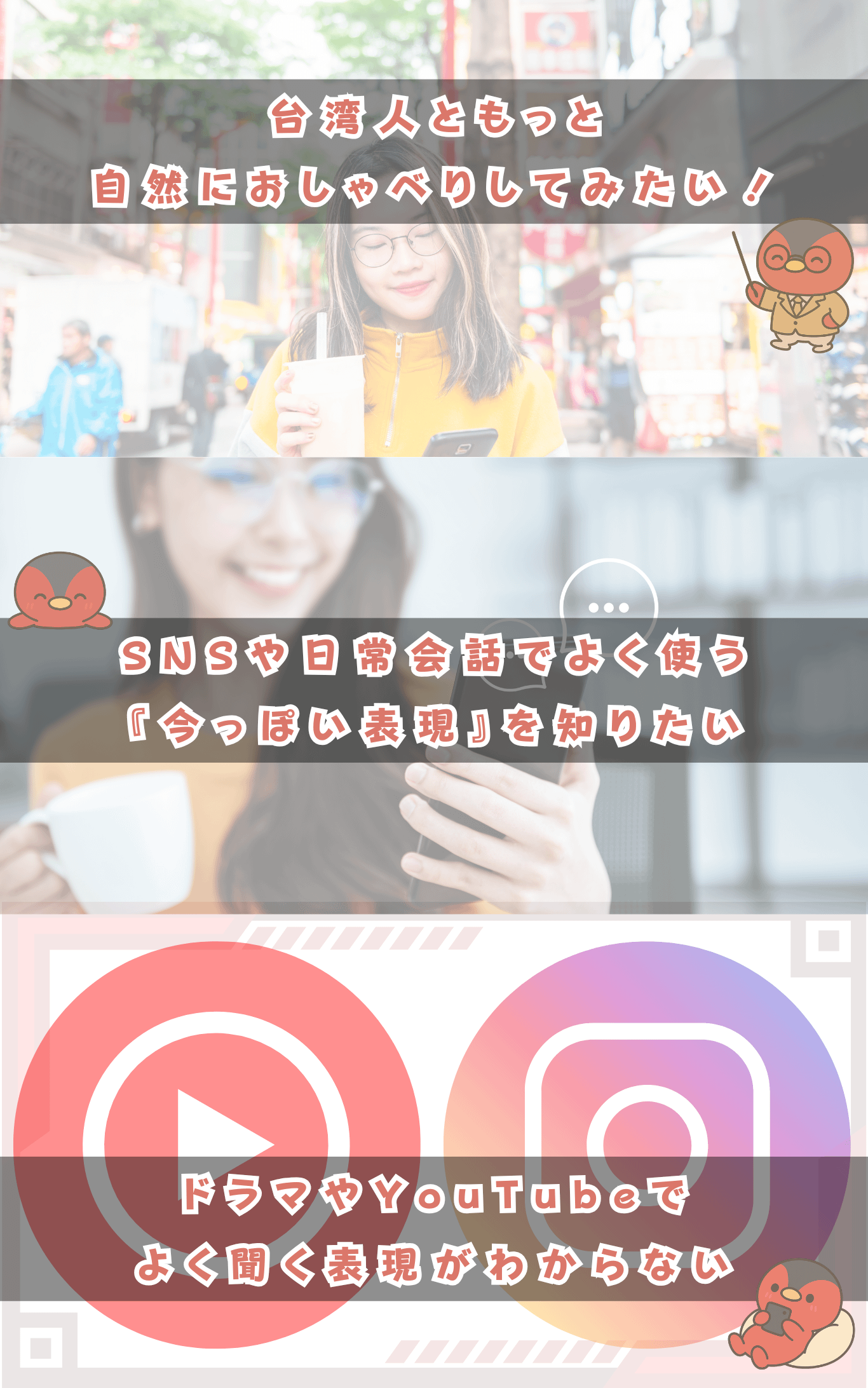 何より大切にしているのは、学ぶ楽しさです。台湾の面白いエピソード、言葉遊び、流行語など、笑いや驚きを交えながら学べる内容を豊富に取り入れています。楽しく学べば、自然と記憶に残り、使いたくなるものだと思います。