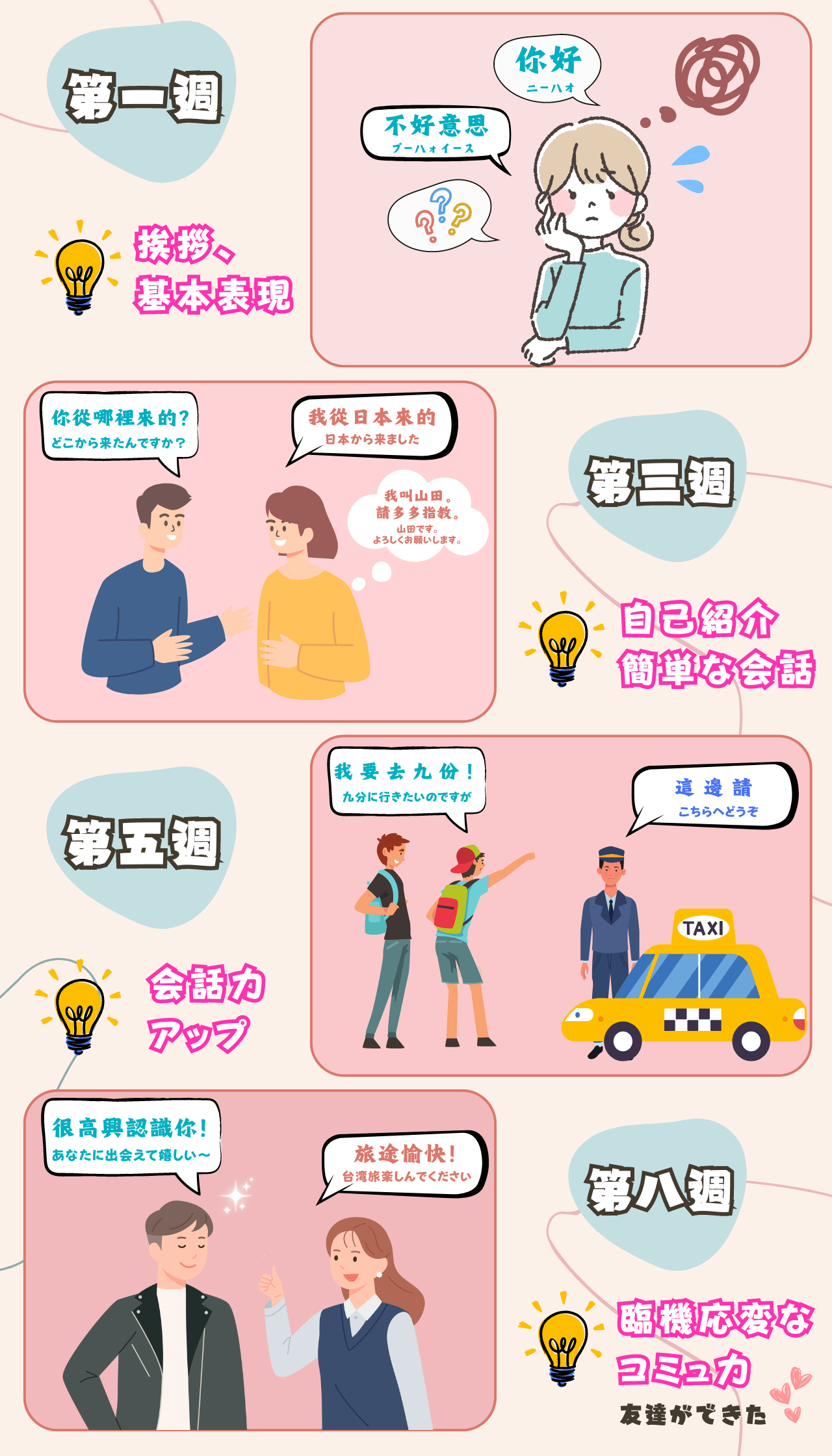 何より大切にしているのは、学ぶ楽しさです。台湾の面白いエピソード、言葉遊び、流行語など、笑いや驚きを交えながら学べる内容を豊富に取り入れています。楽しく学べば、自然と記憶に残り、使いたくなるものだと思います。