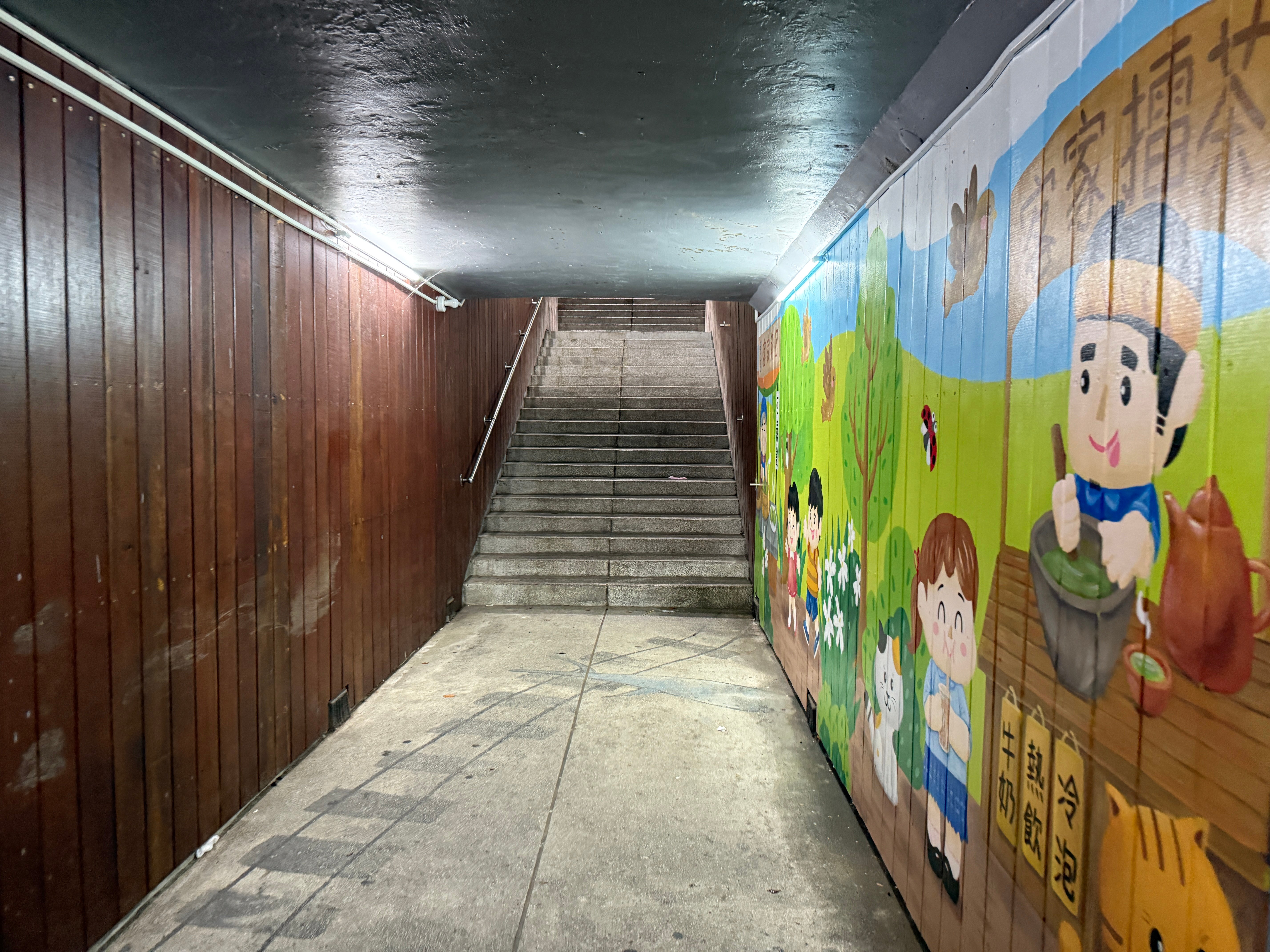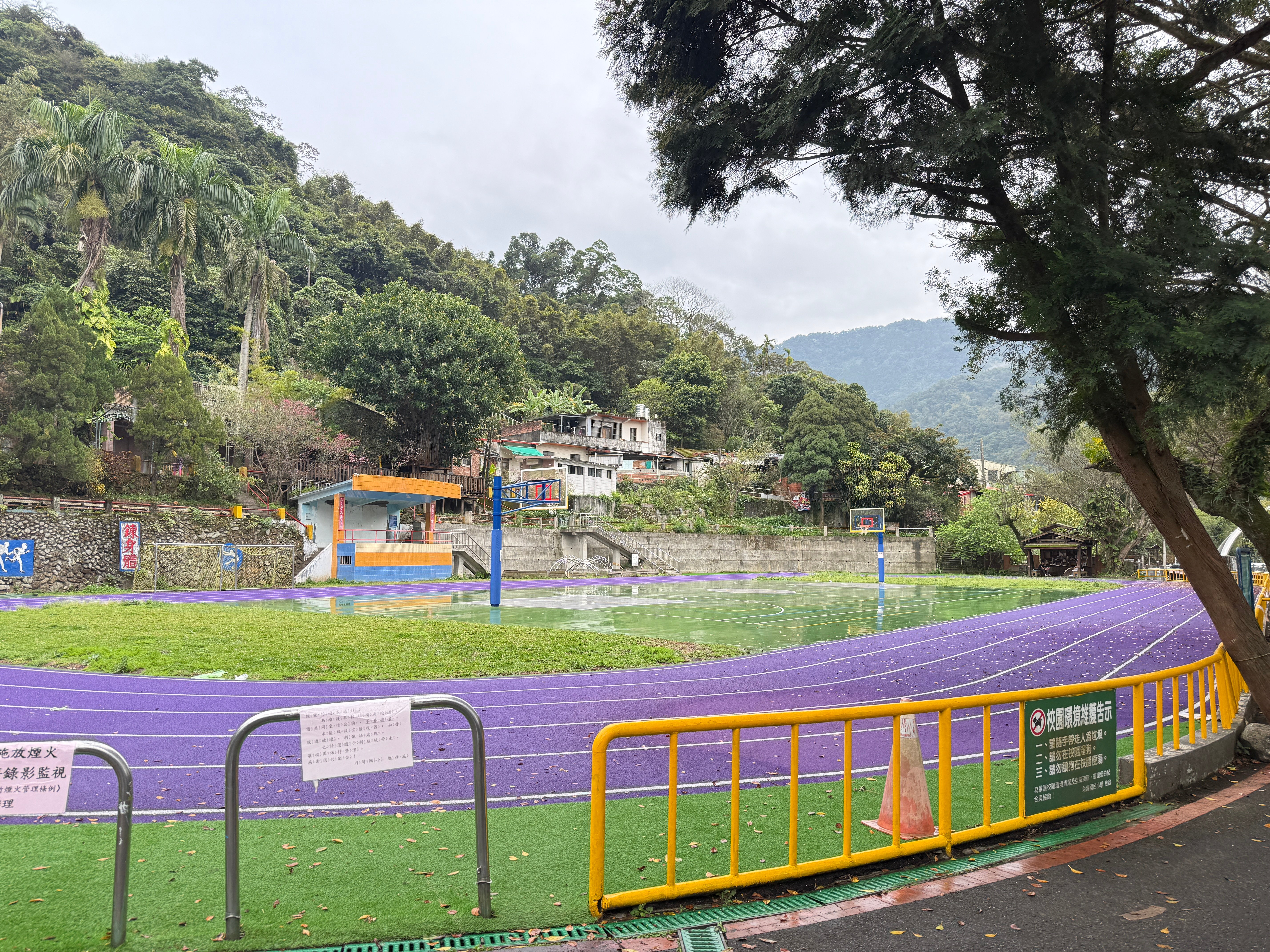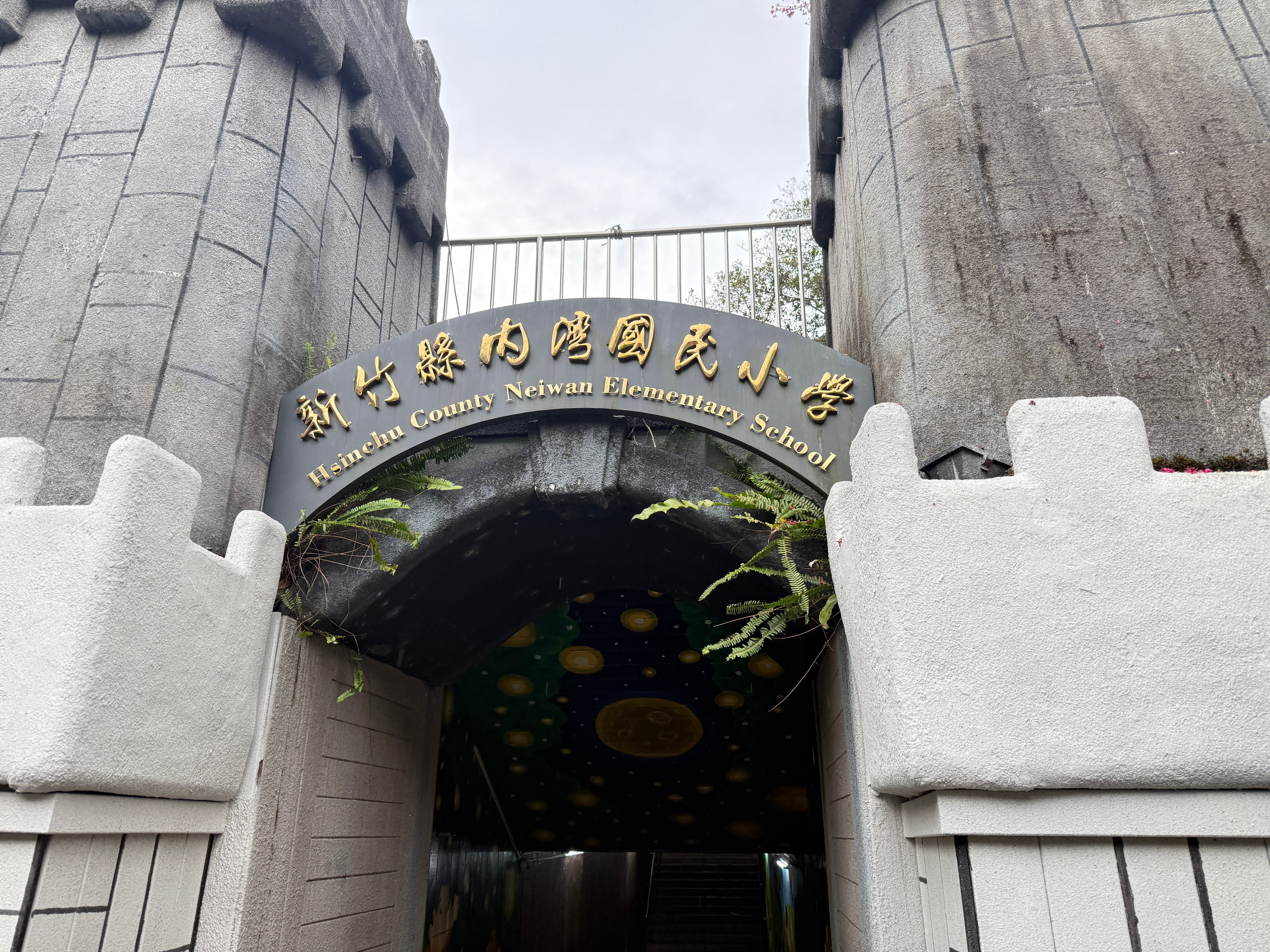 この建物の下を通るトンネルのような通路を抜けると、そのまま内湾国小の校内へ入ることができる。